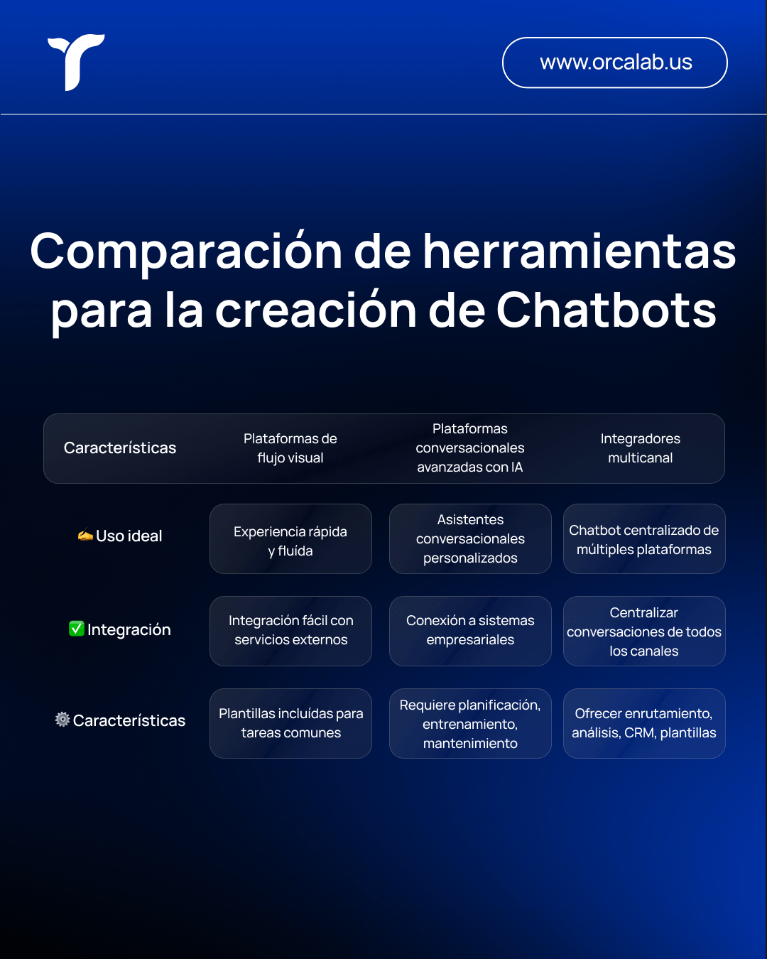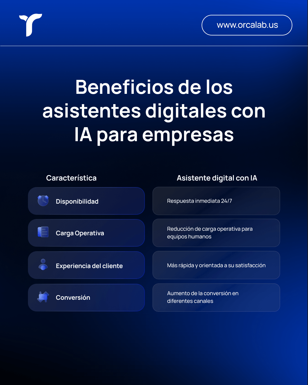 En Orca Lab. hemos ayudado a empresas de distintos sectores a implementar asistentes digitales efectivos, combinando plataformas potentes con flujos inteligentes y una experiencia centrada en el usuario.