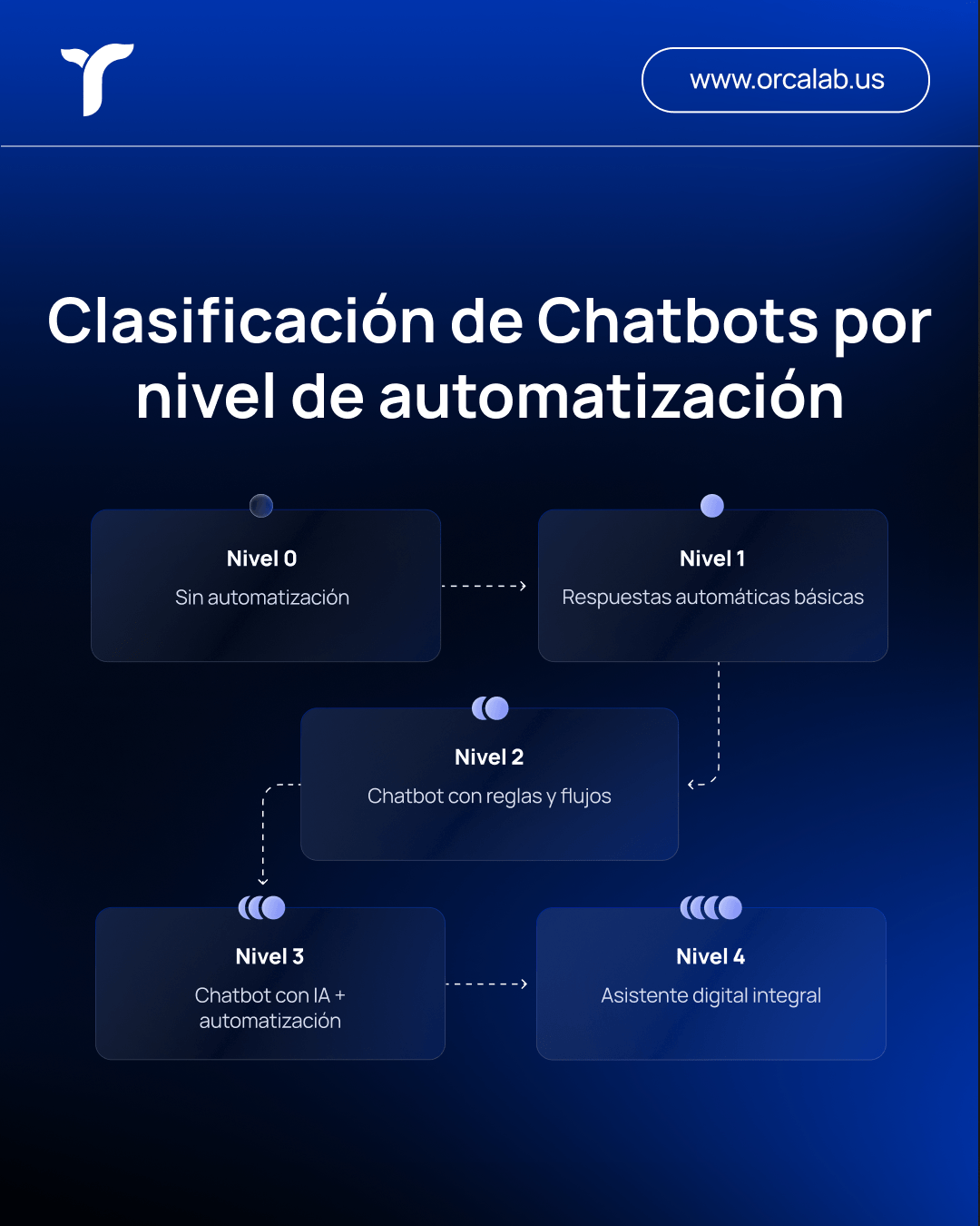 Para construir un asistente que realmente agregue valor —automatizando procesos, reduciendo carga operativa y mejorando la experiencia del cliente— es importante entender en qué nivel de madurez se encuentra tu solución conversacional.